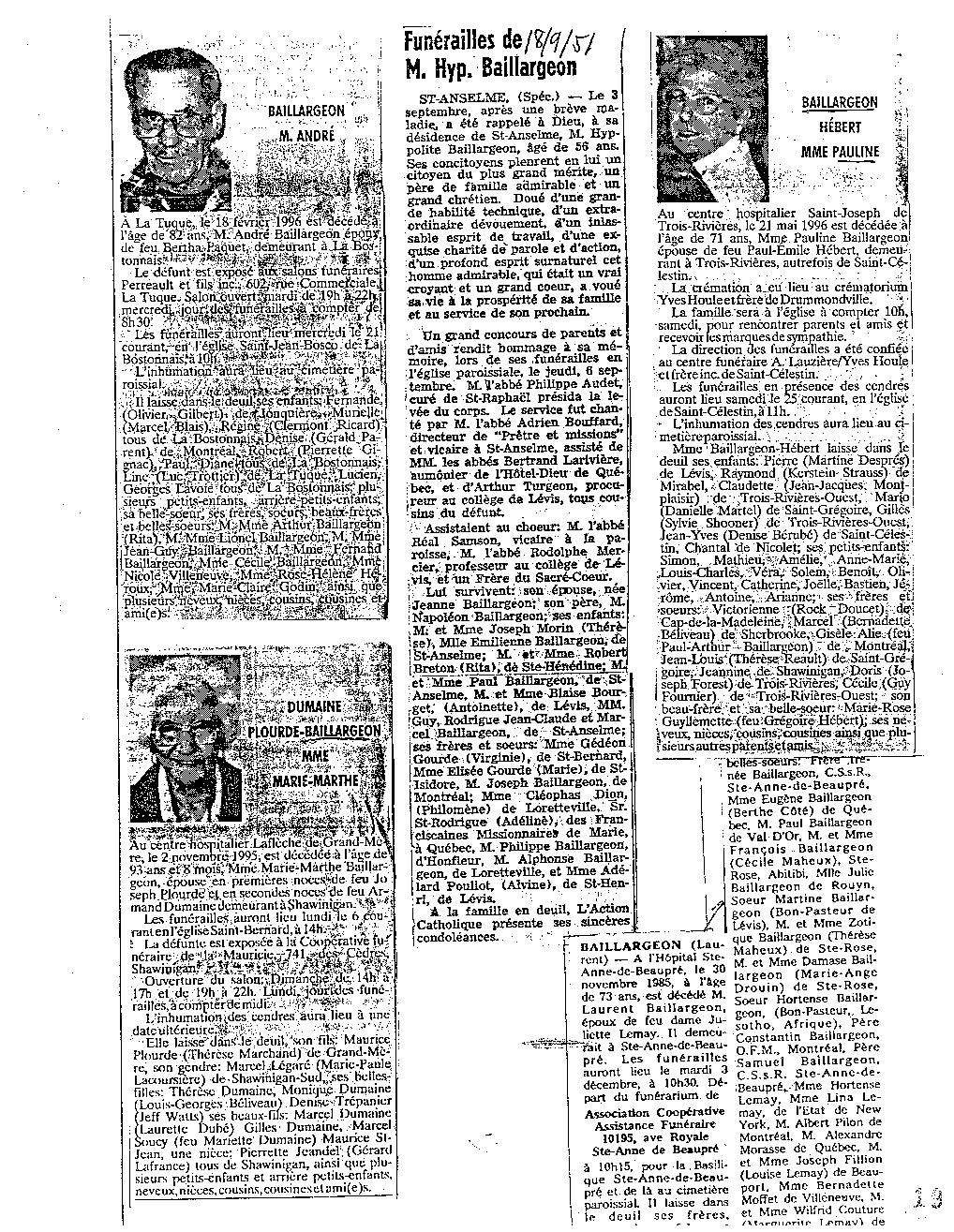 Enfants mariés de Baillargeon Andre et/ou Paquet Bertha