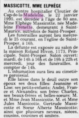 Lieu du décès : Cap-de-la-Madeleine