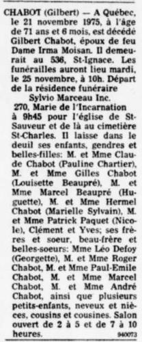 Inhumé le 25 novembre 1975 au cimetière St-Charles de Québec