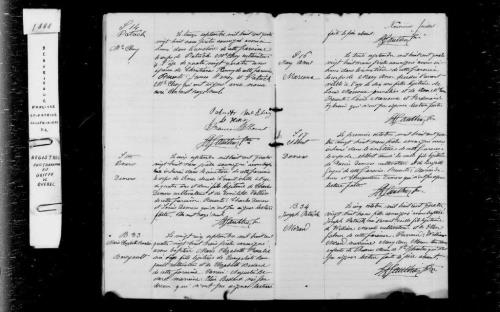 "B33 - MARIE ÉLIZABETH ROSALIA BOURGAULT. Le vingt-cinq septembre mil hui cent quatre vingt-huit, nous prêtre soussigné, avons baptis.é Marie Elizabeth Rosalia Bourgault, née hier, fille légitime de Évangéliste Bourgault, cultivateur, et de Elizabeth Bédard de cette paroisse. Oarrain: Augustin Bédard. Marraine: Elise Bédard, née Goudreau qui n'ont pu signer. Lecture faite. Le père absent. L. Gauthier, ptre."