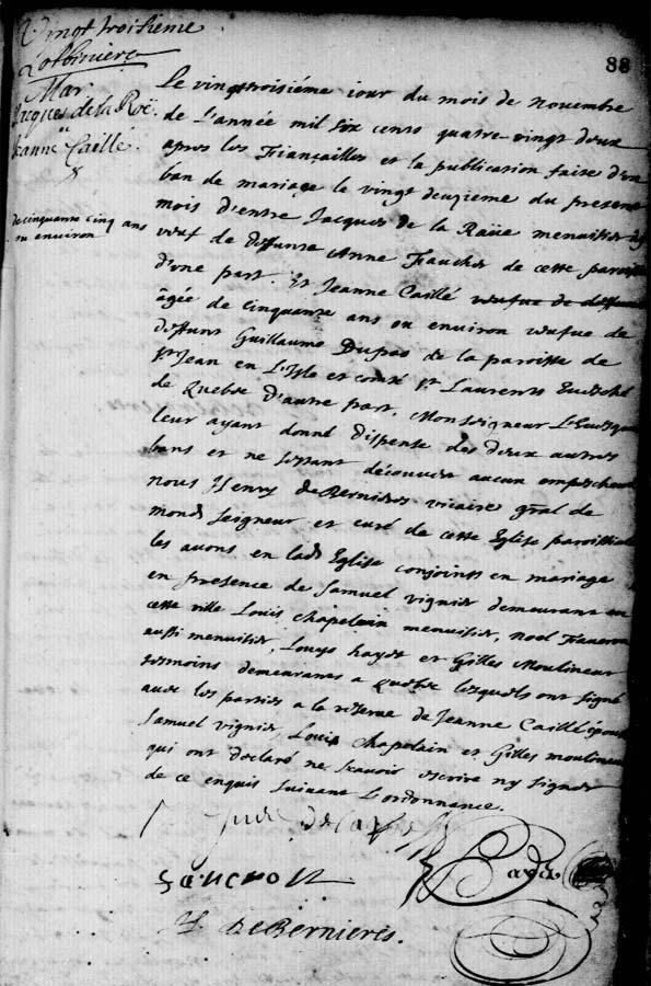 le 23 novembre 1682, Notre-Dame, Québec, Québec