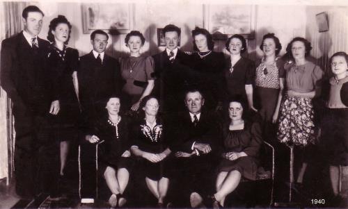 Debout, de g. à dr. : Roméo, Graziella, Roland, Laurette, René, Annette, Gilberte,