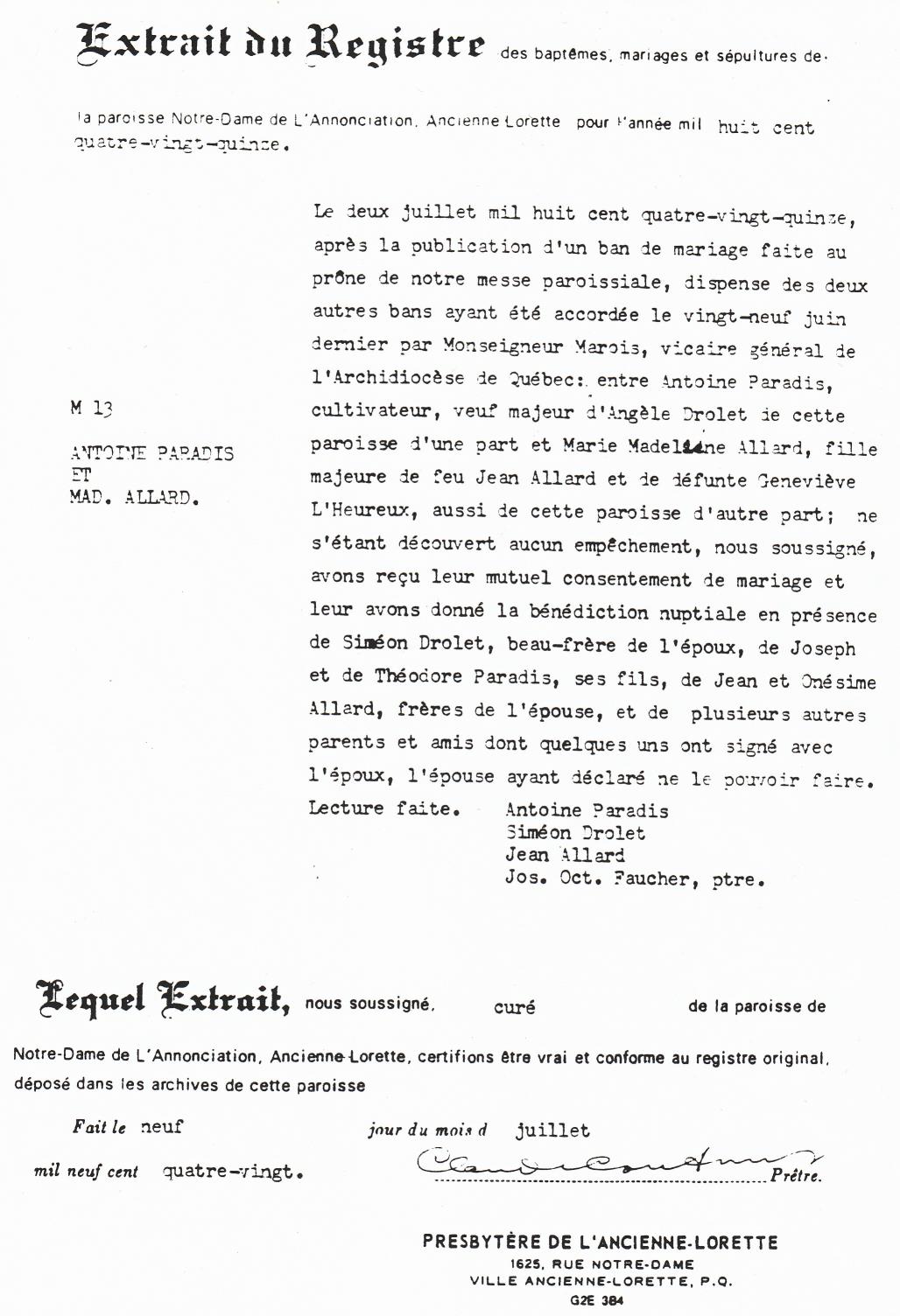Madeleine Allard et Antoine Paradis gracieuseté Claude Paradis