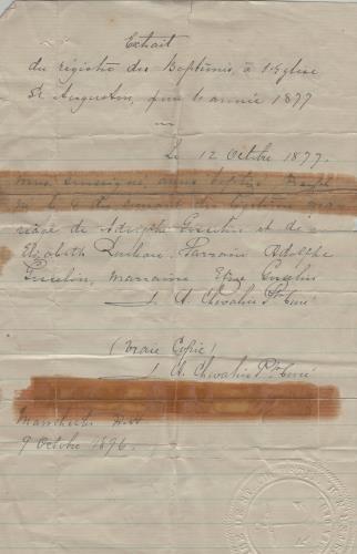 Certificat de Baptême de Joseph Gosselin 12-10-1877