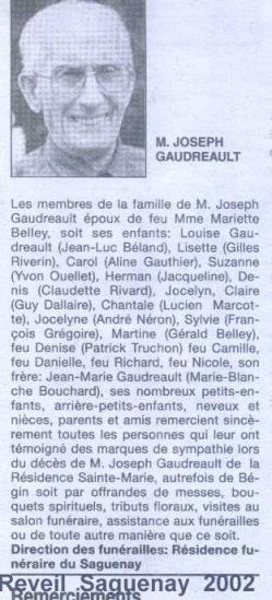 Biographie Gaudreau Joseph