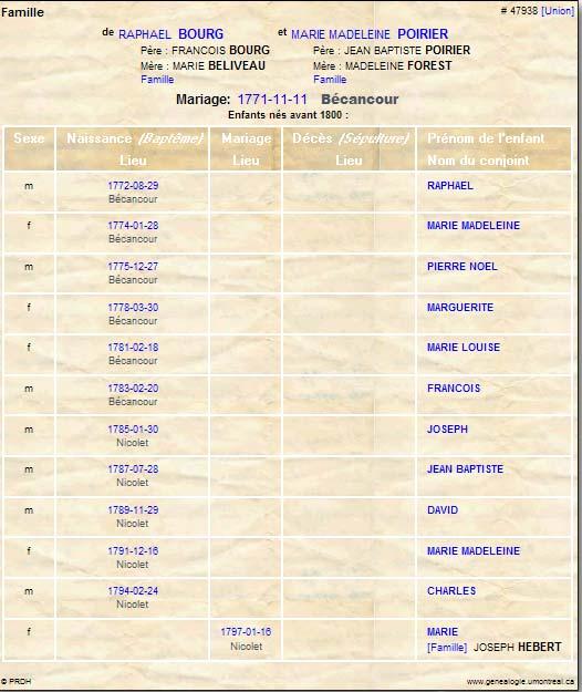 Famille de Raphael Bourg et Marie-Madeleine Poirier