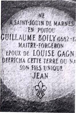 Guillaume Boily est né à Saint Jouin le 12 janvier 1682 dans une famille de neuf enfants. En 1724, les récoltes étaient mauvaises, la famine menaçait : cédant aux propositions alléchantes d'un recruteur du Roi, le forgeron Guillaume Boily, âgé de 42 ans n'a pas hésité à s'embarquer à la Rochelle à destination de la Nouvelle France (Canada).