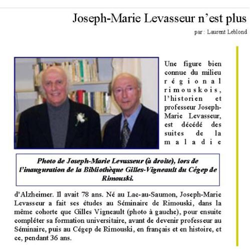 Joseph-Marie Levasseur est le fils unique de Joseph Levasseur, industriel de Lac-au-Saumon, Québec.